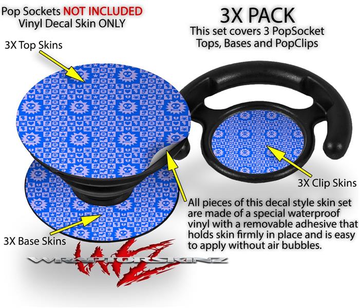 Decal Style Vinyl Skin Wrap 3 Pack for PopSockets Gothic Punk Pattern Blue (POPSOCKET NOT INCLUDED)