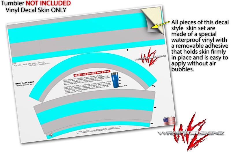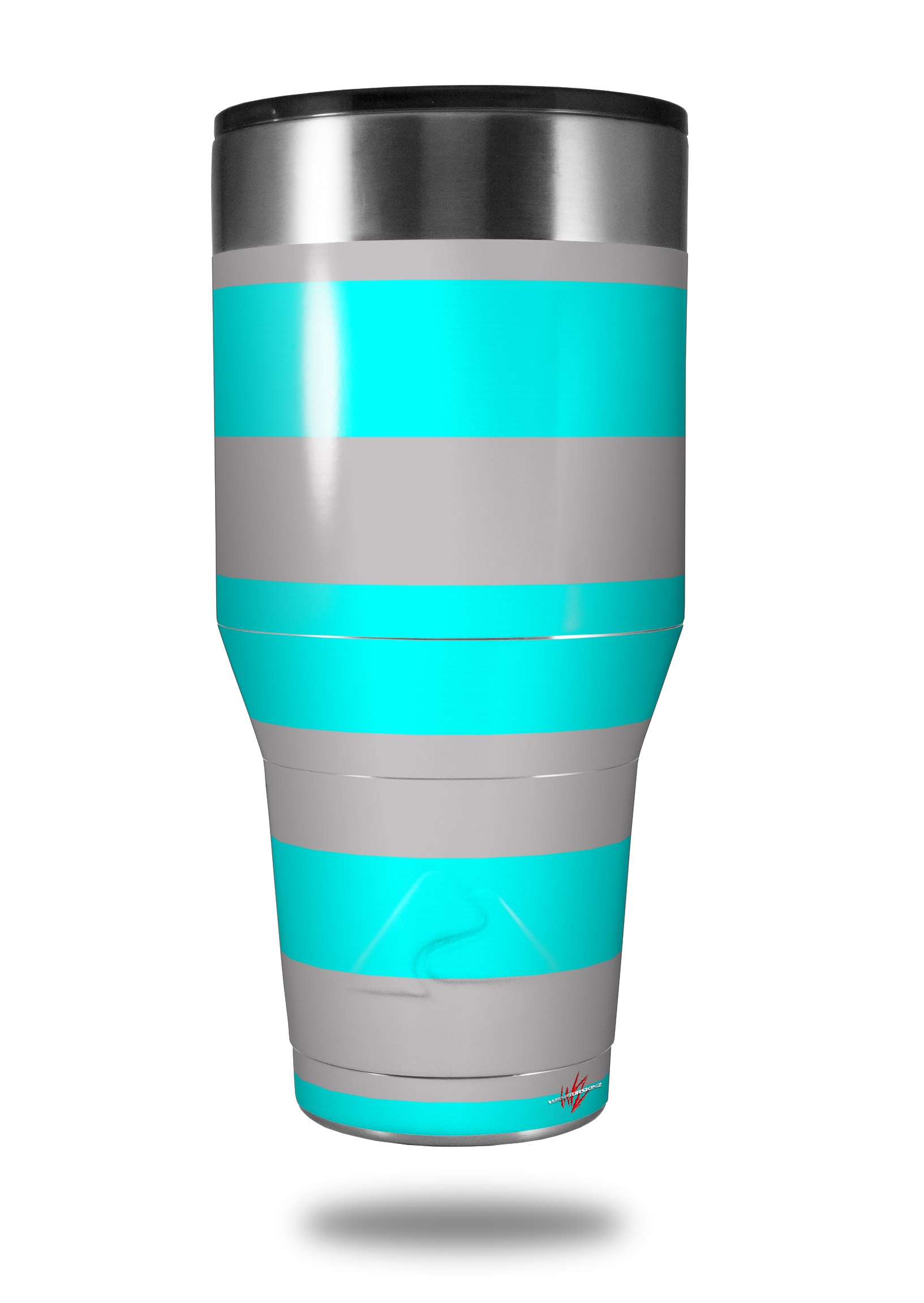 Skin Decal Wrap for Walmart Ozark Trail Tumblers 40oz Psycho Stripes Neon Teal and Gray (TUMBLER NOT INCLUDED) by WraptorSkinz