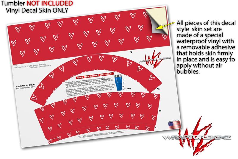 Skin Decal Wrap for Walmart Ozark Trail Tumblers 40oz Hearts Red On White (TUMBLER NOT INCLUDED) by WraptorSkinz