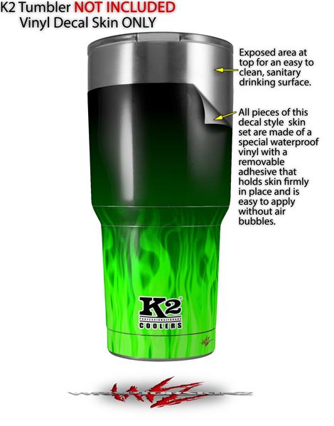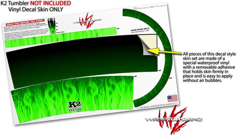 Skin Decal Wrap for K2 Element Tumbler 30oz - Fire Flames Green (TUMBLER NOT INCLUDED) by WraptorSkinz