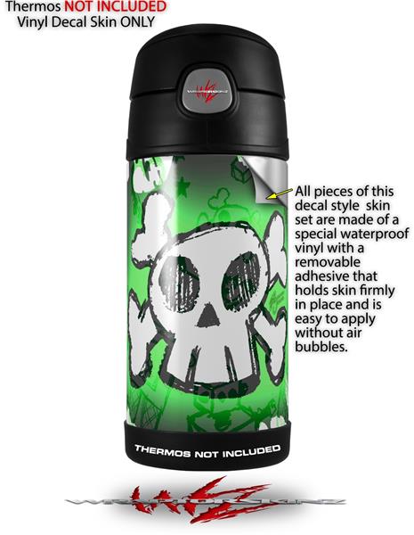 Skin Decal Wrap for Thermos Funtainer 12oz Bottle Cartoon Skull Green (BOTTLE NOT INCLUDED) by WraptorSkinz