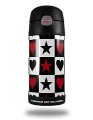 Skin Decal Wrap for Thermos Funtainer 12oz Bottle Hearts and Stars Red (BOTTLE NOT INCLUDED) by WraptorSkinz