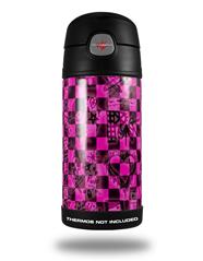Skin Decal Wrap for Thermos Funtainer 12oz Bottle Pink Checkerboard Sketches (BOTTLE NOT INCLUDED) by WraptorSkinz