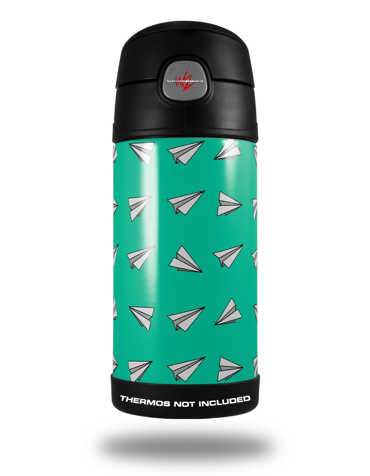 Skin Decal Wrap for Thermos Funtainer 12oz Bottle Paper Planes Turquoise (BOTTLE NOT INCLUDED) by WraptorSkinz