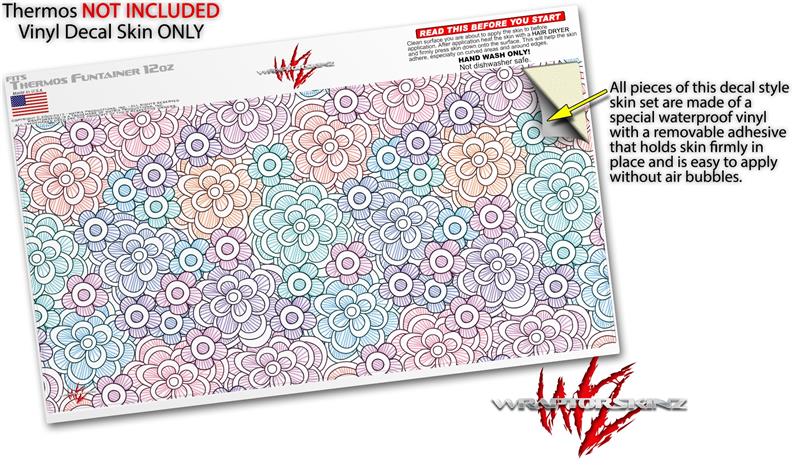 Skin Decal Wrap for Thermos Funtainer 12oz Bottle Flowers Pattern 08 (BOTTLE NOT INCLUDED) by WraptorSkinz
