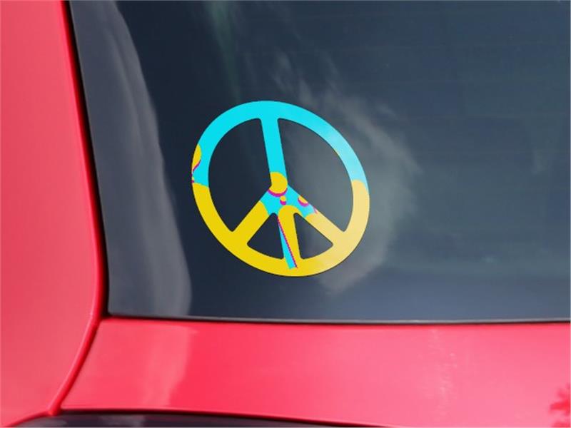 Drip Yellow Teal Pink - Peace Sign Car Window Decal 6 x 6 inches