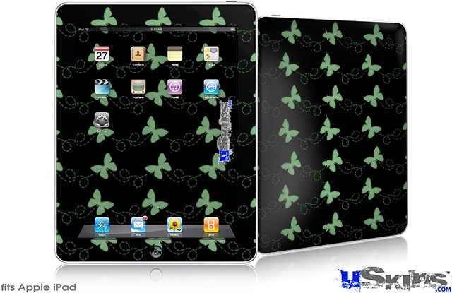 iPad Skin - Pastel Butterflies Green on Black