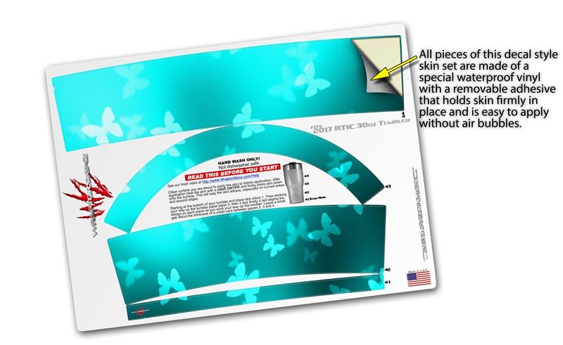 WraptorSkinz Skin Wrap compatible with 2017 and newer RTIC Tumblers 30oz Bokeh Butterflies Neon Teal (TUMBLER NOT INCLUDED)
