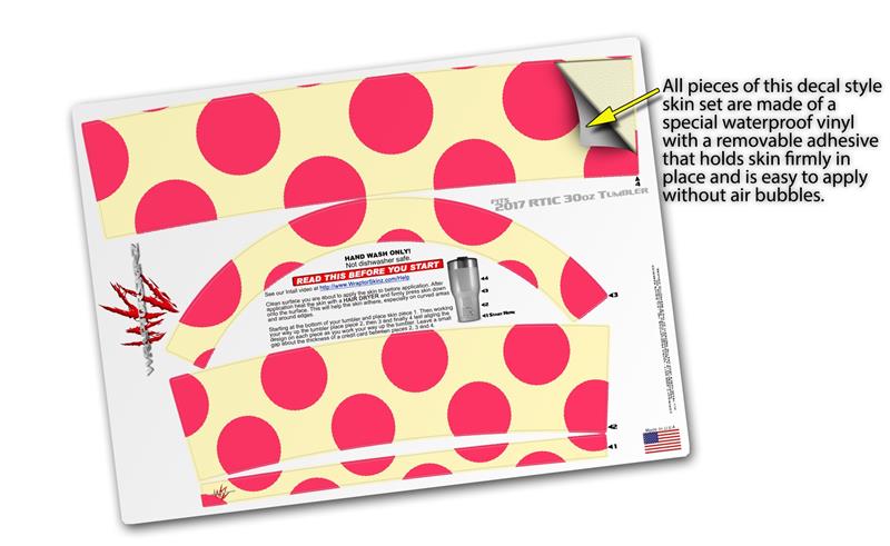 WraptorSkinz Skin Wrap compatible with 2017 and newer RTIC Tumblers 30oz Kearas Polka Dots Pink On Cream (TUMBLER NOT INCLUDED)