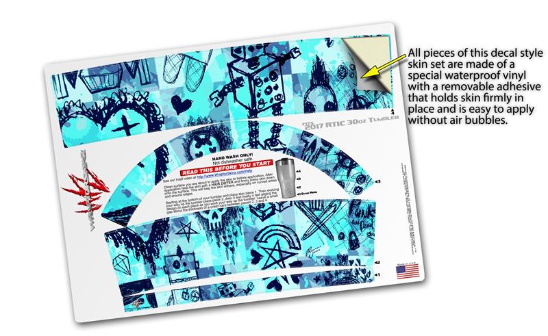 WraptorSkinz Skin Wrap compatible with 2017 and newer RTIC Tumblers 30oz Scene Kid Sketches Blue (TUMBLER NOT INCLUDED)