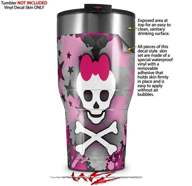WraptorSkinz Skin Wrap compatible with 2017 and newer RTIC Tumblers 30oz Princess Skull Heart Pink (TUMBLER NOT INCLUDED)