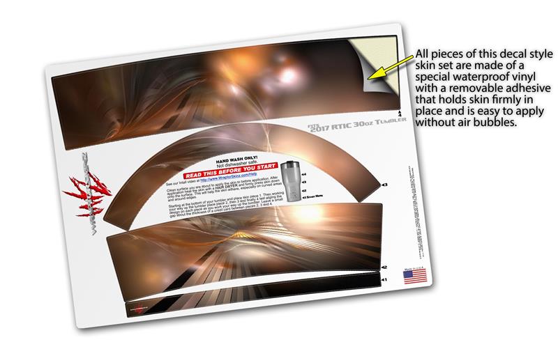 WraptorSkinz® skin wraps for 2017 RTIC Tumblers are printed using superb photo quality designs and vibrant colors printed with special fade resistant inks that last even in direct sun for years. WraptorSkinz® are a composite of two layers of commercial grade materials. The bottom layer is a soft, flexible vinyl with a special removable adhesive that is easily positioned, applied without air bubbles. Next we print the bottom layer with UV protected, fade resistant inks that deliver superb photo quality designs in vibrant colors. Finally we bond a professional grade laminate over the entire skin adding a glossy protective finish.