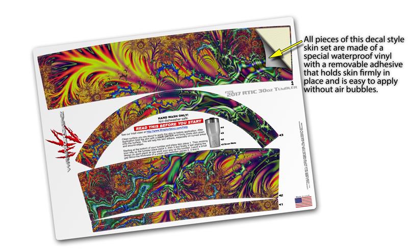 WraptorSkinz® skin wraps for 2017 RTIC Tumblers are printed using superb photo quality designs and vibrant colors printed with special fade resistant inks that last even in direct sun for years. WraptorSkinz® are a composite of two layers of commercial grade materials. The bottom layer is a soft, flexible vinyl with a special removable adhesive that is easily positioned, applied without air bubbles. Next we print the bottom layer with UV protected, fade resistant inks that deliver superb photo quality designs in vibrant colors. Finally we bond a professional grade laminate over the entire skin adding a glossy protective finish.