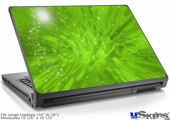 Laptop Skin fits most larger size laptops with 16" to 18" screens. Skin measures 15 1/2" wide x 10 1/2" high. uSkinsTM self adhering vinyl skins will look amazing on your electronic gear, printed at the highest resolution possible for unbeatable color and razor sharp clarity. Unlike bulky silicon, plastic or metal cases and faceplates, uSkins are designed to be thin and very tough. uSkins are a composite of layered commercial grade vinyls. The bottom layer is a soft, flexible vinyl with a special removable adhesive that is easily positioned, applied without air bubbles, and effortlessly removed without leaving a sticky residue. uSkins are printed with the latest in UV protected inks that resist fading for up to 3 years even in direct sunlight. Finally we bond a professional grade laminate over the entire skin adding a professional glossy protective finish.