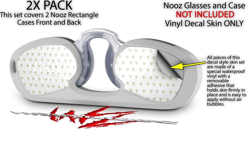 Decal Style Vinyl Skin Wrap 2 Pack for Nooz Glasses Rectangle Case Hearts Green (NOOZ NOT INCLUDED) by WraptorSkinz