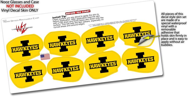 Decal Style Vinyl Skin Wrap 2 Pack for Nooz Glasses Rectangle Case Iowa Hawkeyes 02 Black on Gold (NOOZ NOT INCLUDED) by WraptorSkinz