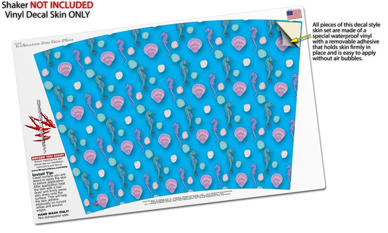 Skin Wrap Decal for IceShaker 2nd Gen 26oz Seahorses and Shells Blue Medium (SHAKER NOT INCLUDED)
