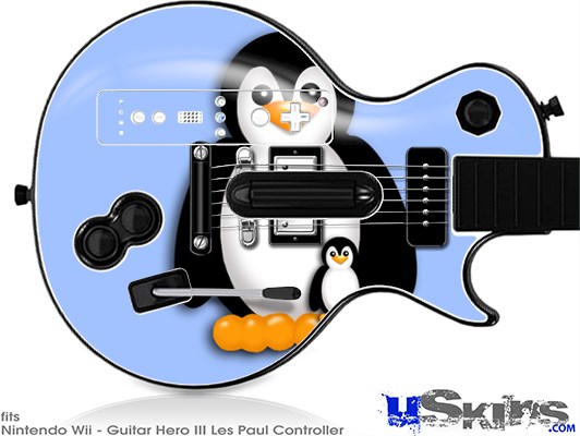 Guitar Hero III Wii Les Paul Skin - Penguins on Blue