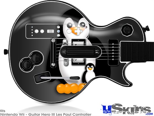 Guitar Hero III Wii Les Paul Skin - Penguins on Black