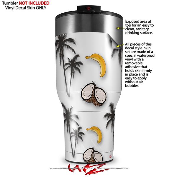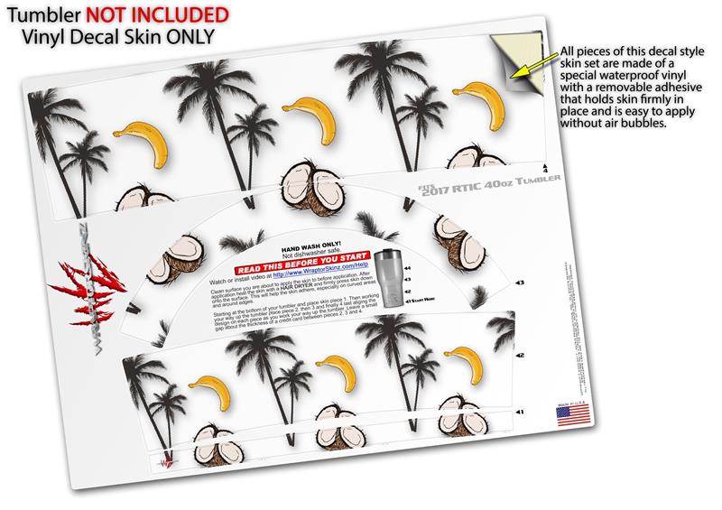 Skin Wrap Decal for 2017 RTIC Tumblers 40oz Coconuts Palm Trees and Bananas White (TUMBLER NOT INCLUDED)