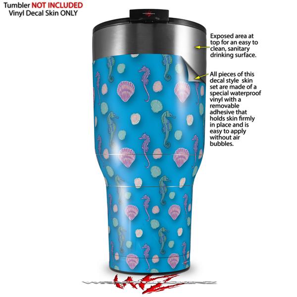 Skin Wrap Decal for 2017 RTIC Tumblers 40oz Seahorses and Shells Blue Medium (TUMBLER NOT INCLUDED)