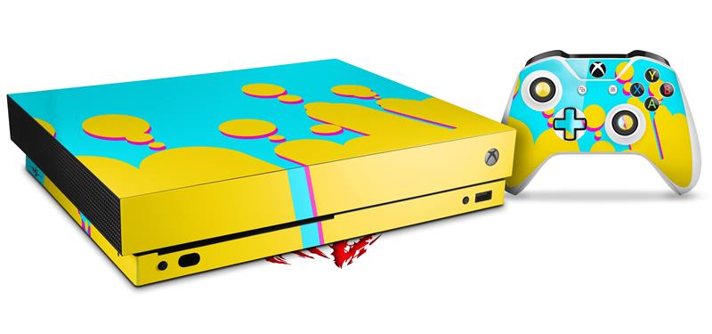 Skin Wrap for XBOX One X Console and Controller Drip Yellow Teal Pink