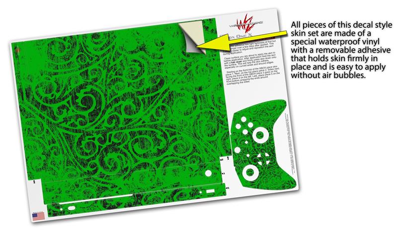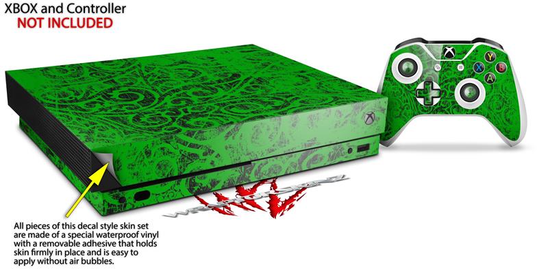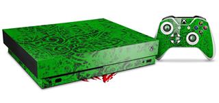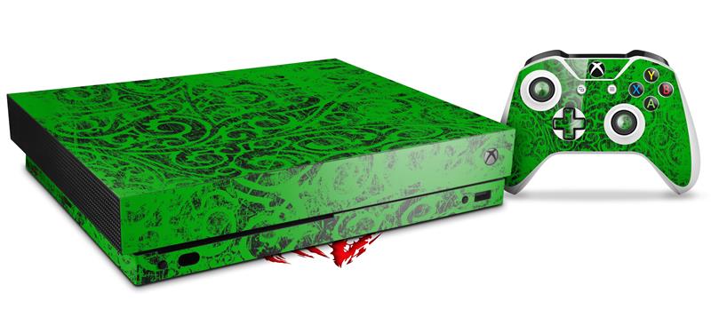 Skin Wrap for XBOX One X Console and Controller Folder Doodles Green