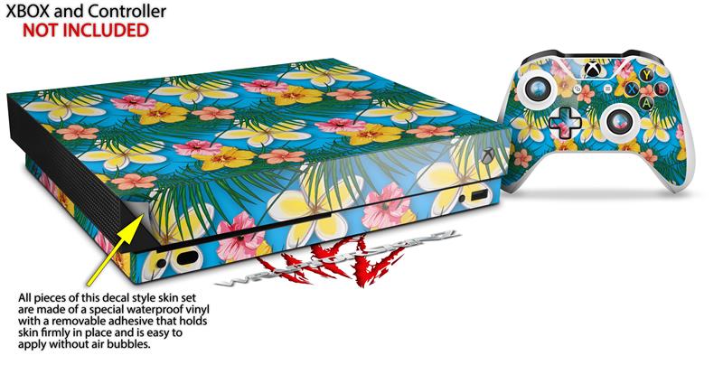 Skin Wrap for XBOX One X Console and Controller Beach Flowers 02 Blue Medium