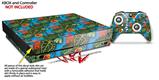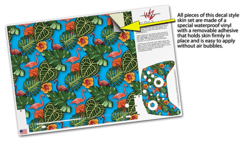 Skin Wrap for XBOX One X Console and Controller Famingos and Flowers Blue Medium