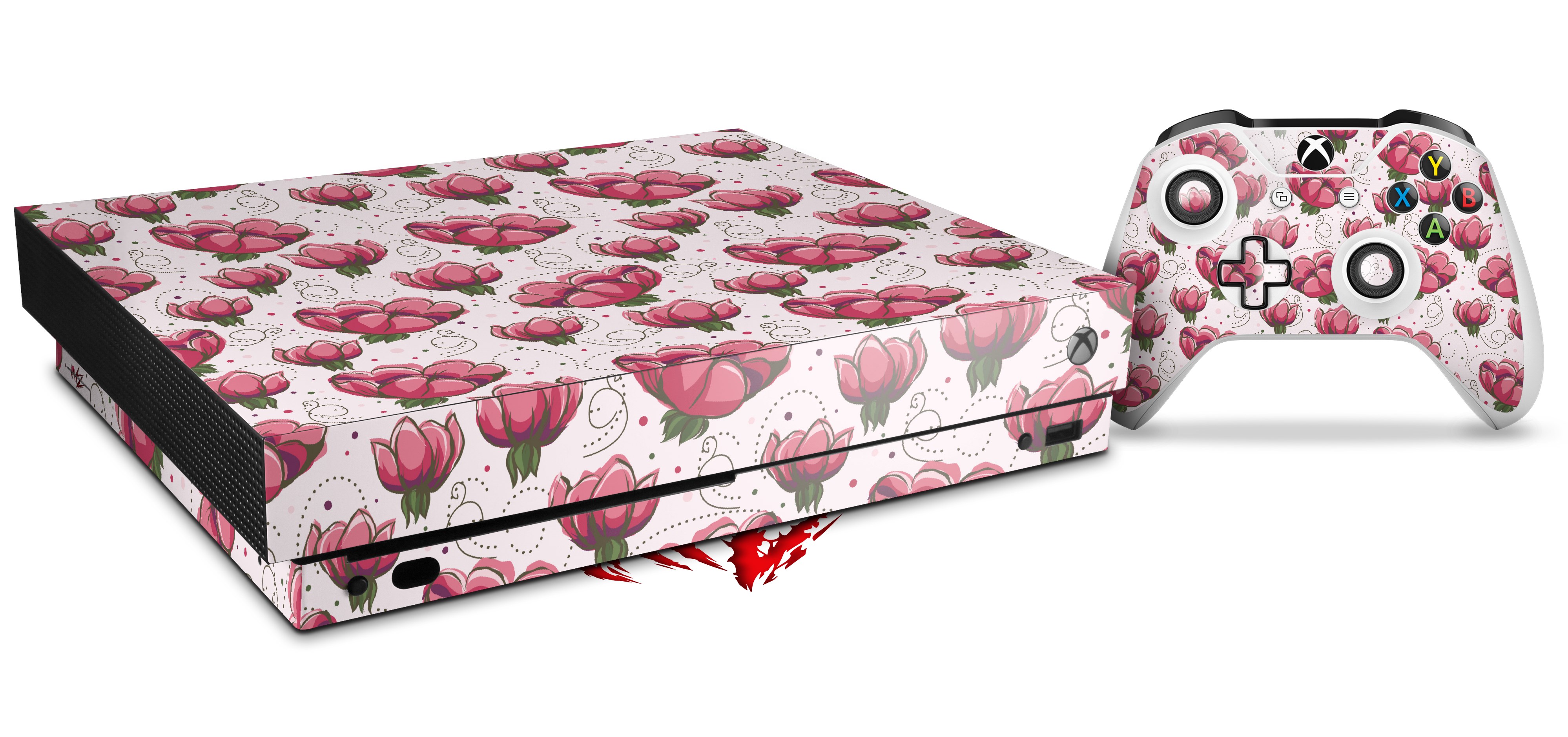 Skin Wrap for XBOX One X Console and Controller Flowers Pattern 16