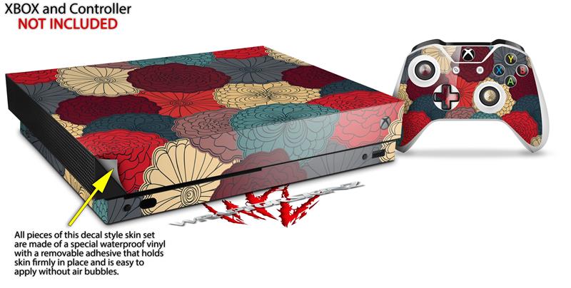 Skin Wrap for XBOX One X Console and Controller Flowers Pattern 04