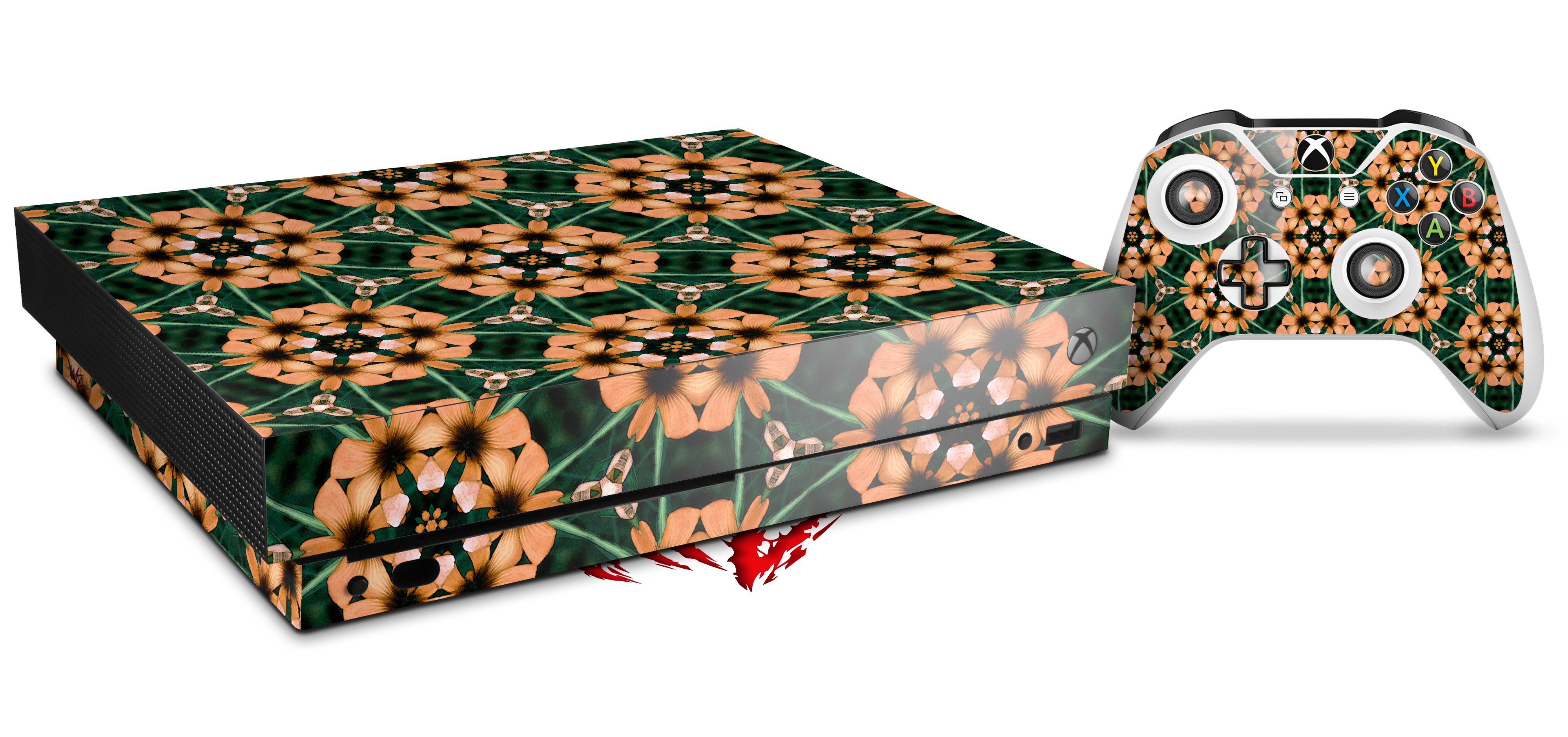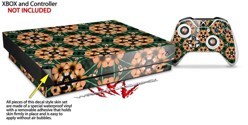 Skin Wrap for XBOX One X Console and Controller Floral Pattern Orange