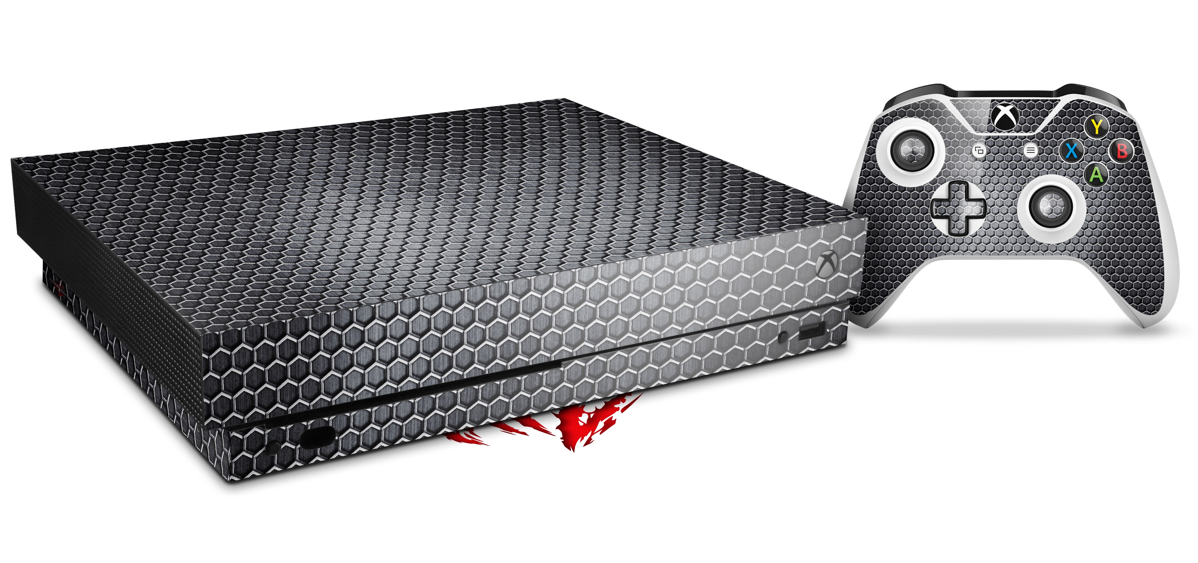 Skin Wrap for XBOX One X Console and Controller Mesh Metal Hex
