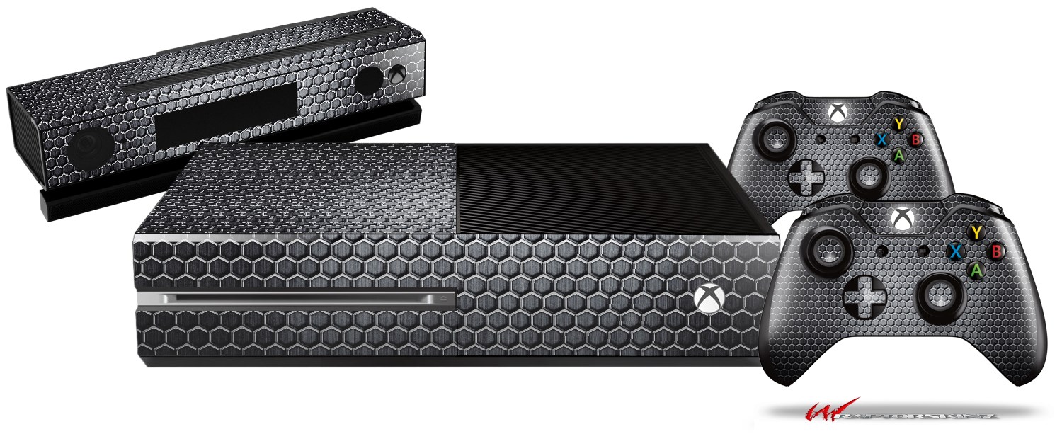 Mesh Metal Hex - Holiday Bundle Decal Style Skin fits XBOX One Console Original, Kinect and 2 Controllers (XBOX SYSTEM NOT INCLUDED)