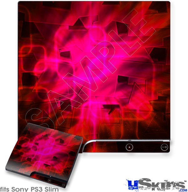 Decal Skin compatible with Sony PS3 Slim Cubic Shards Red