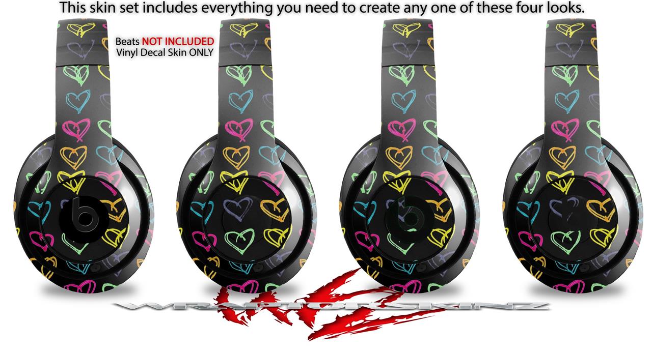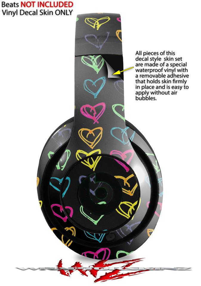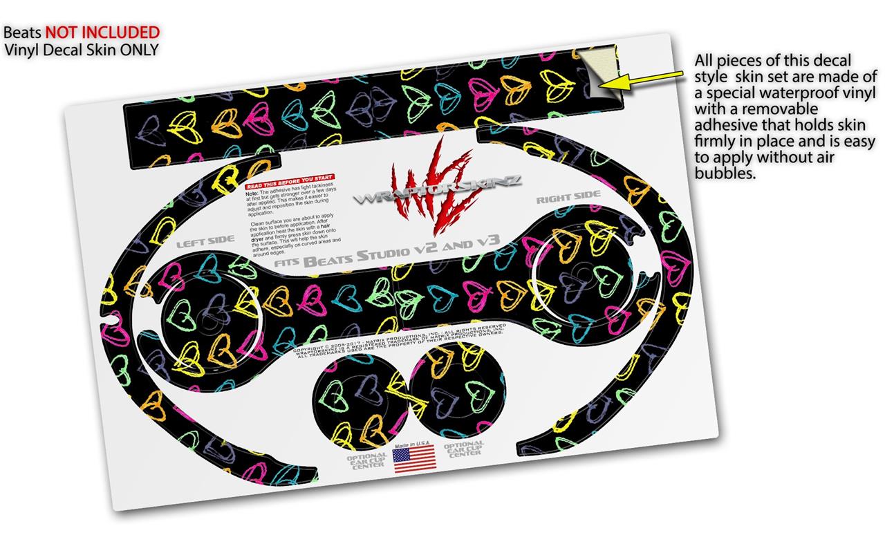 WraptorSkinz Skin Decal Wrap compatible with Beats Studio 2 and 3 Wired and Wireless Headphones Kearas Hearts Black Skin Only (HEADPHONES NOT INCLUDED)