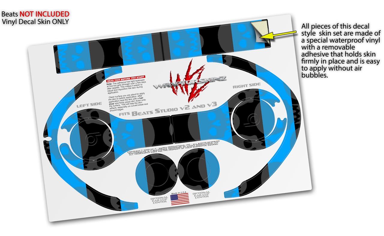 WraptorSkinz Skin Decal Wrap compatible with Beats Studio 2 and 3 Wired and Wireless Headphones Skull Stripes Blue Skin Only (HEADPHONES NOT INCLUDED)