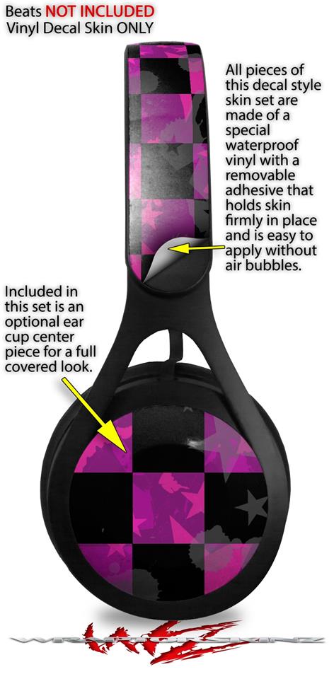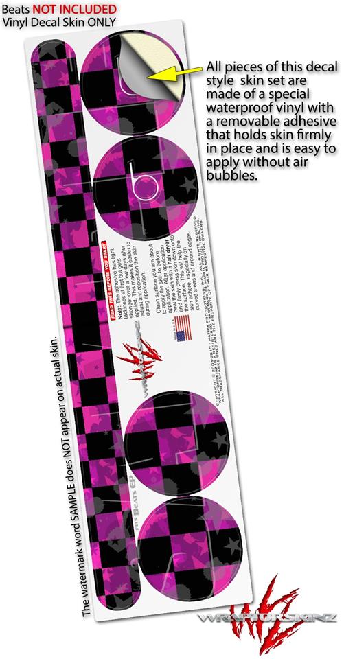 WraptorSkinz Skin Decal Wrap compatible with Beats EP Headphones Checker Stars Pink Skin Only HEADPHONES NOT INCLUDED