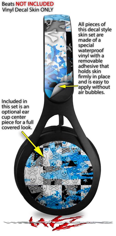 WraptorSkinz Skin Decal Wrap compatible with Beats EP Headphones Checker Skull Splatter Blue Skin Only HEADPHONES NOT INCLUDED