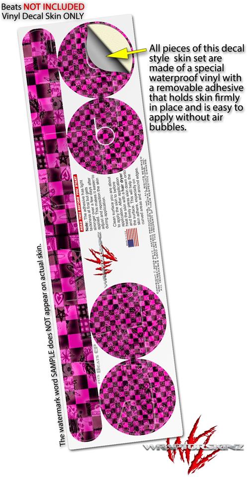 WraptorSkinz Skin Decal Wrap compatible with Beats EP Headphones Pink Checkerboard Sketches Skin Only HEADPHONES NOT INCLUDED