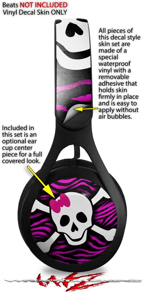 WraptorSkinz Skin Decal Wrap compatible with Beats EP Headphones Pink Zebra Skull Skin Only HEADPHONES NOT INCLUDED