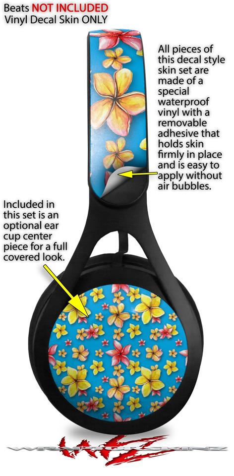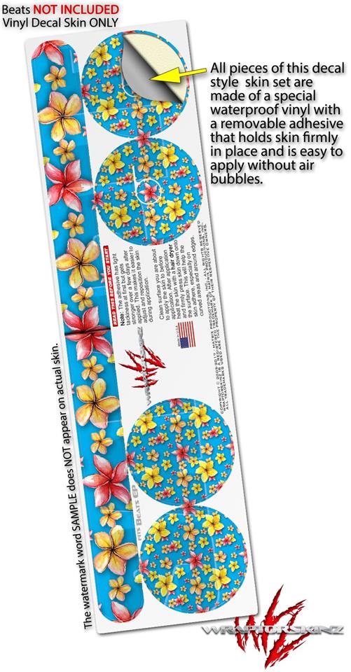 WraptorSkinz Skin Decal Wrap compatible with Beats EP Headphones Beach Flowers Blue Medium Skin Only HEADPHONES NOT INCLUDED