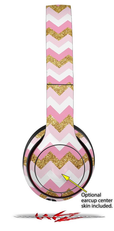 WraptorSkinz Skin Decal Wrap compatible with Beats Solo 2 and Solo 3 Wireless Headphones Pink and White Chevron (HEADPHONES NOT INCLUDED)