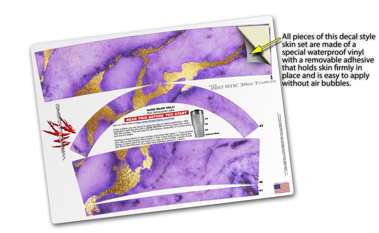 WraptorSkinz Skin Wrap compatible with 2017 and newer RTIC Tumblers 30oz Purple and Gold Gilded Marble (TUMBLER NOT INCLUDED)