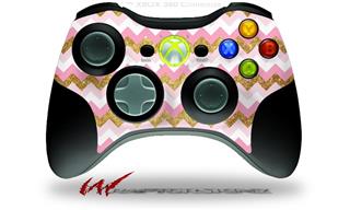 XBOX 360 Wireless Controller Decal Style Skin - Pink and White Chevron (CONTROLLER NOT INCLUDED)