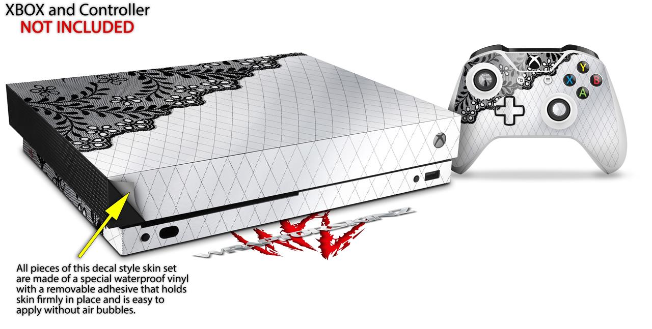 Skin Wrap for XBOX One X Console and Controller Black and White Lace