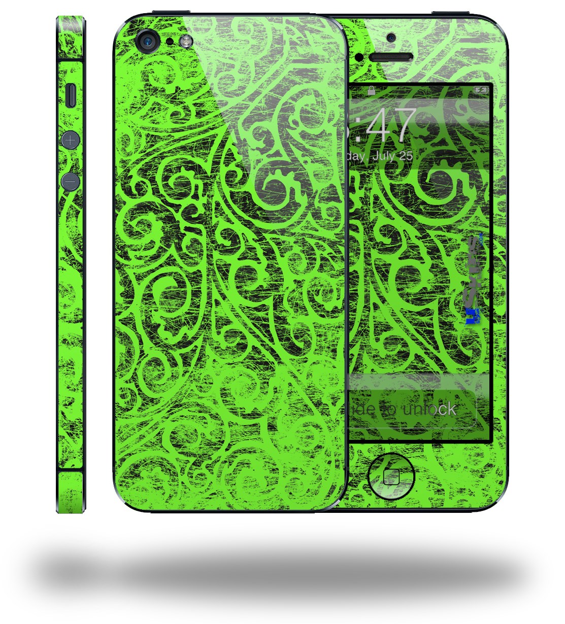 Folder Doodles Neon Green - Decal Style Vinyl Skin (fits Apple Original iPhone 5, NOT the iPhone 5C or 5S)