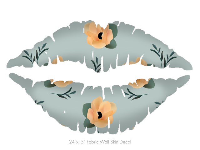 Poppy Orange Light Blue - Kissing Lips Fabric Wall Skin Decal measures 24x15 inches