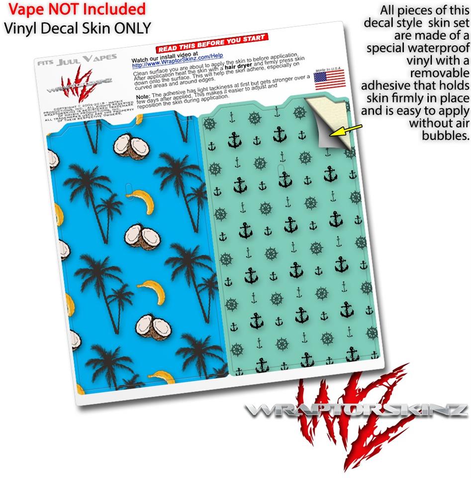 Skin Decal Wrap 2 Pack for Juul Vapes Coconuts Palm Trees and Bananas Blue Medium JUUL NOT INCLUDED