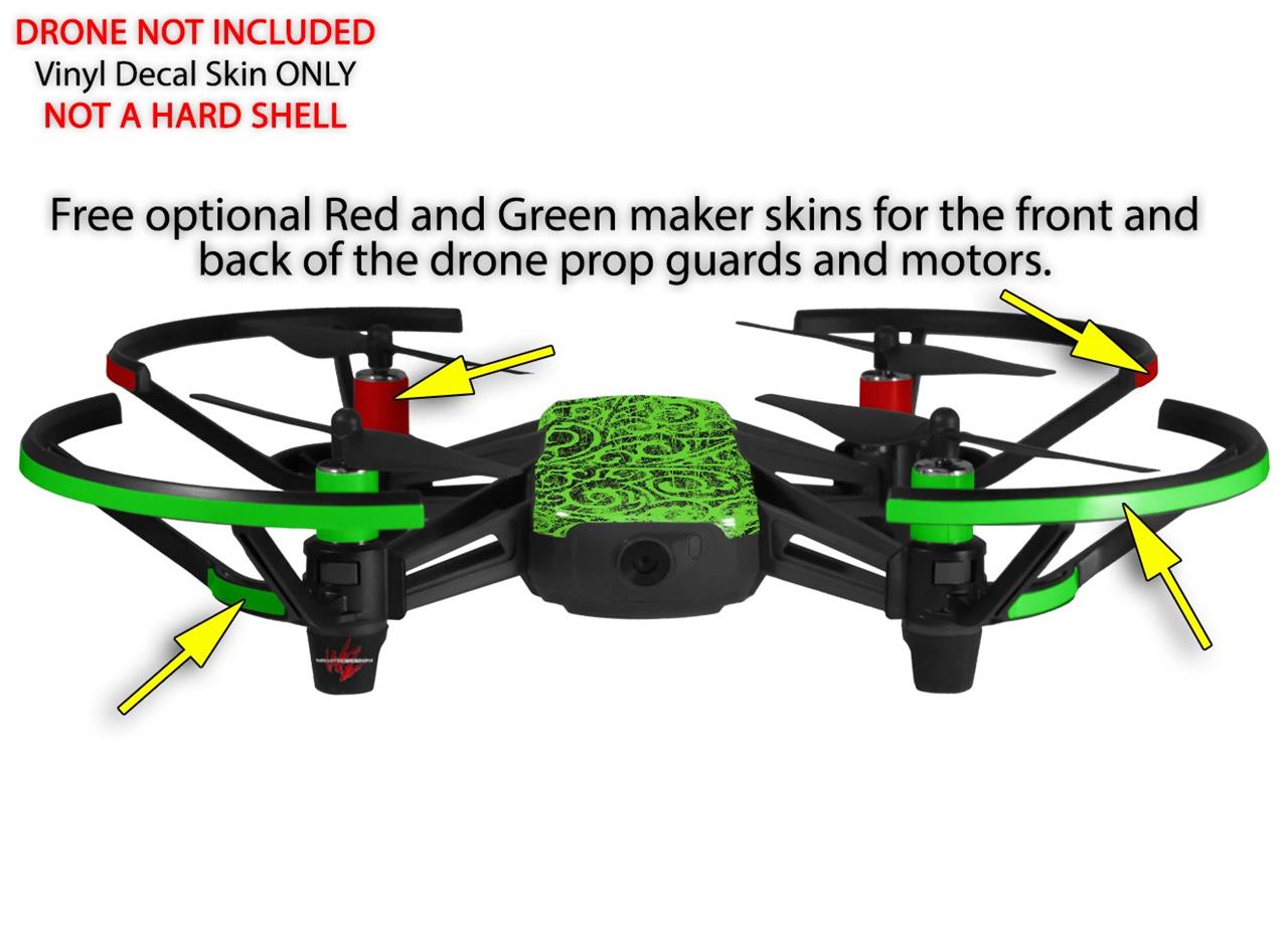 Skin Decal Wrap 2 Pack for DJI Ryze Tello Drone Folder Doodles Neon Green DRONE NOT INCLUDED